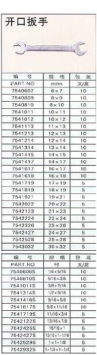 开口公制扳手 7540607,7540809,7540 |